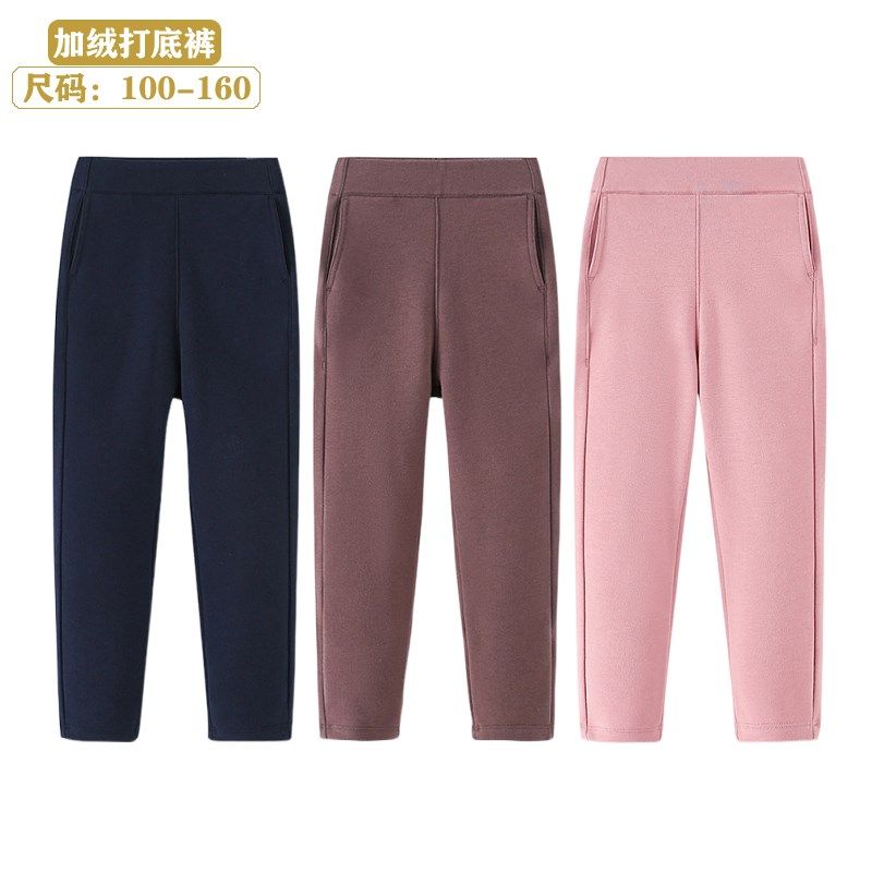 秋冬新款儿童纯棉加绒打底裤女童修身长裤纯色简约裤子宝宝小脚裤