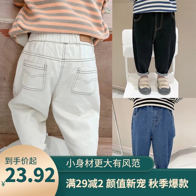 男童牛仔裤加绒2021秋装新款韩版洋气休闲长裤子中小童宝宝小脚裤