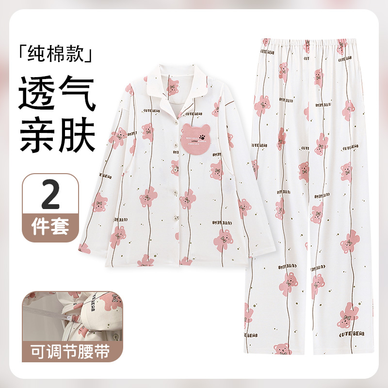 月子服春秋产后哺乳期睡衣女士纯棉孕妇翻领家居服套装腰带可调节