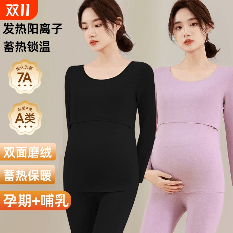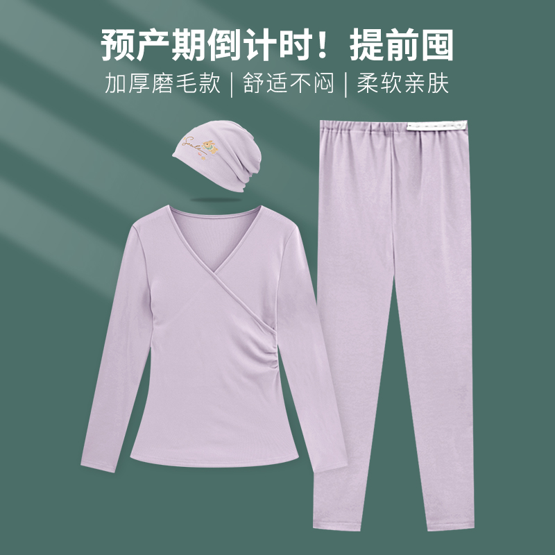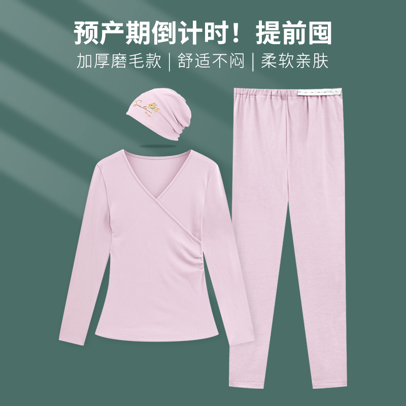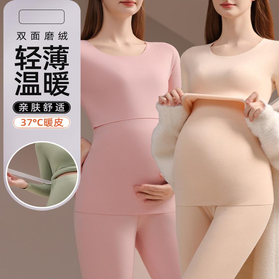 孕妇秋衣秋裤套装德绒保暖内衣产后喂奶哺乳期睡衣加绒秋冬月子服