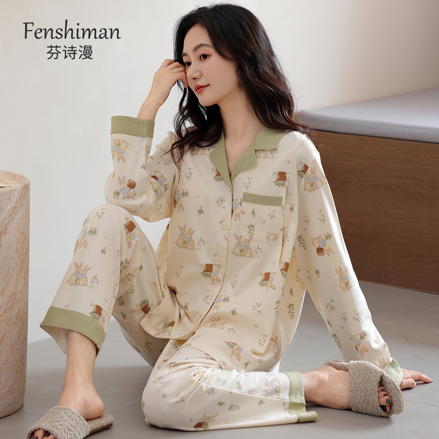 哺乳期睡衣女款春秋季纯棉长袖产后可喂奶全棉秋冬月子薄款家居服