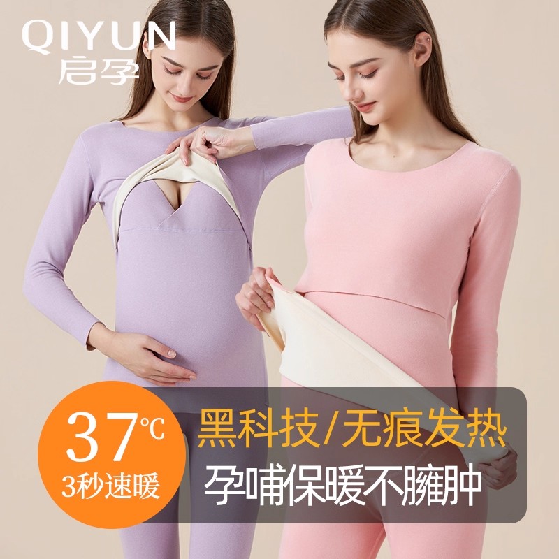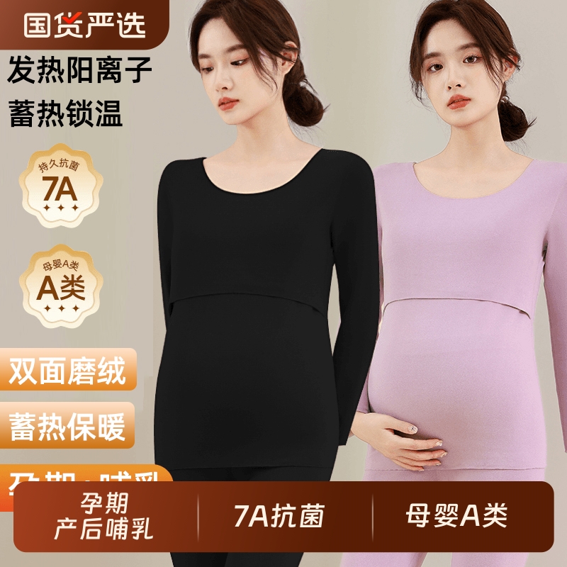 孕妇哺乳秋衣纯棉秋冬季保暖内衣喂奶打底衣哺乳期睡衣家居月子服