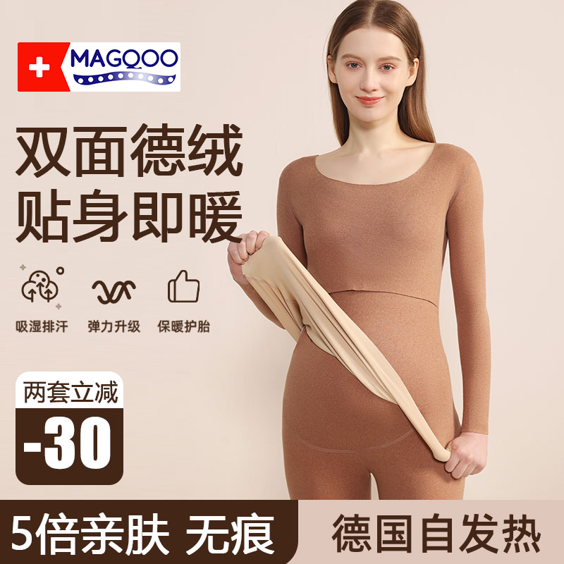 MAGQOO孕妇秋衣秋裤套装保暖内衣孕期秋冬产后哺乳期睡衣大码月子