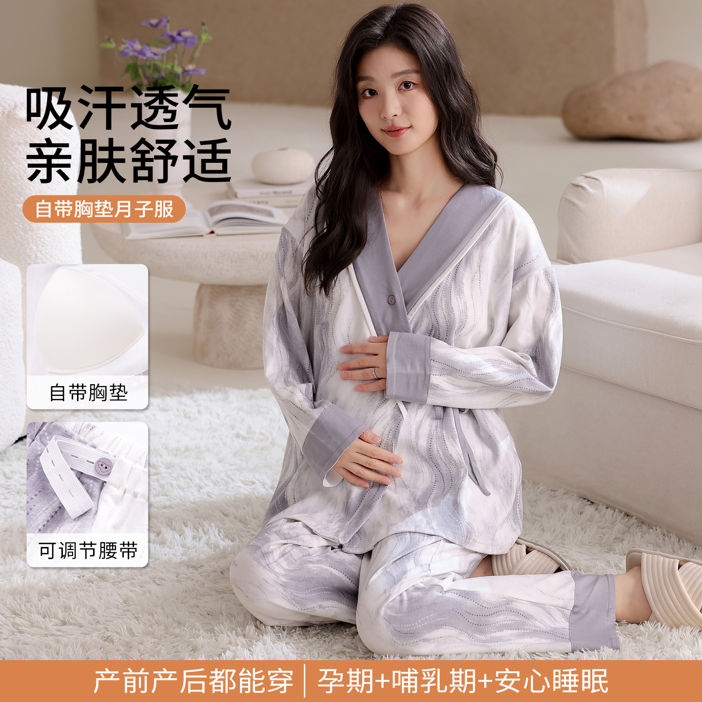 月子服纯棉春秋产后8月份9产妇孕期哺乳期睡衣夏季薄款孕妇家居服