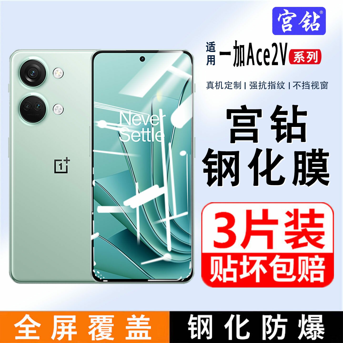 一加Ace2V钢化膜1加Ace2v手机膜全屏覆盖oneplus3v防摔oppo高清竞速版8T防指纹9R抗蓝光玻璃1+acepro保护贴膜
