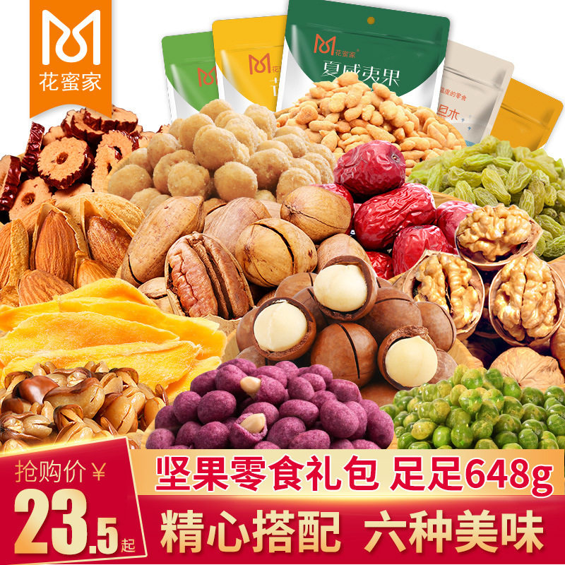 韩国进口花蜜家零食大礼包送女友一整箱648g网红同款年货坚果礼盒