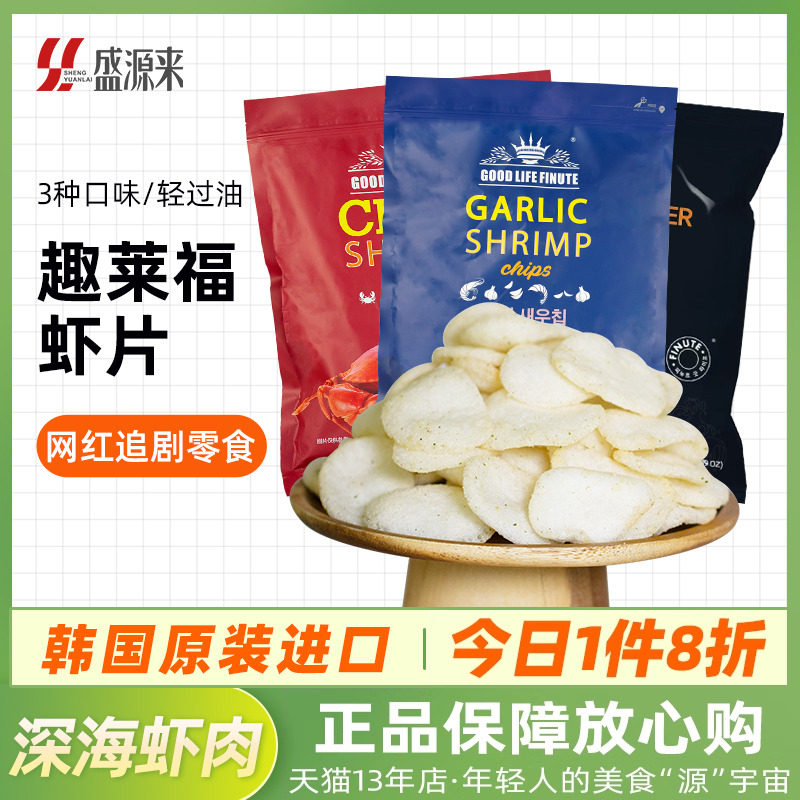 finute趣莱福蒜味虾片韩国进口蒜香蟹味蟹片休闲零食大礼包趣福莱