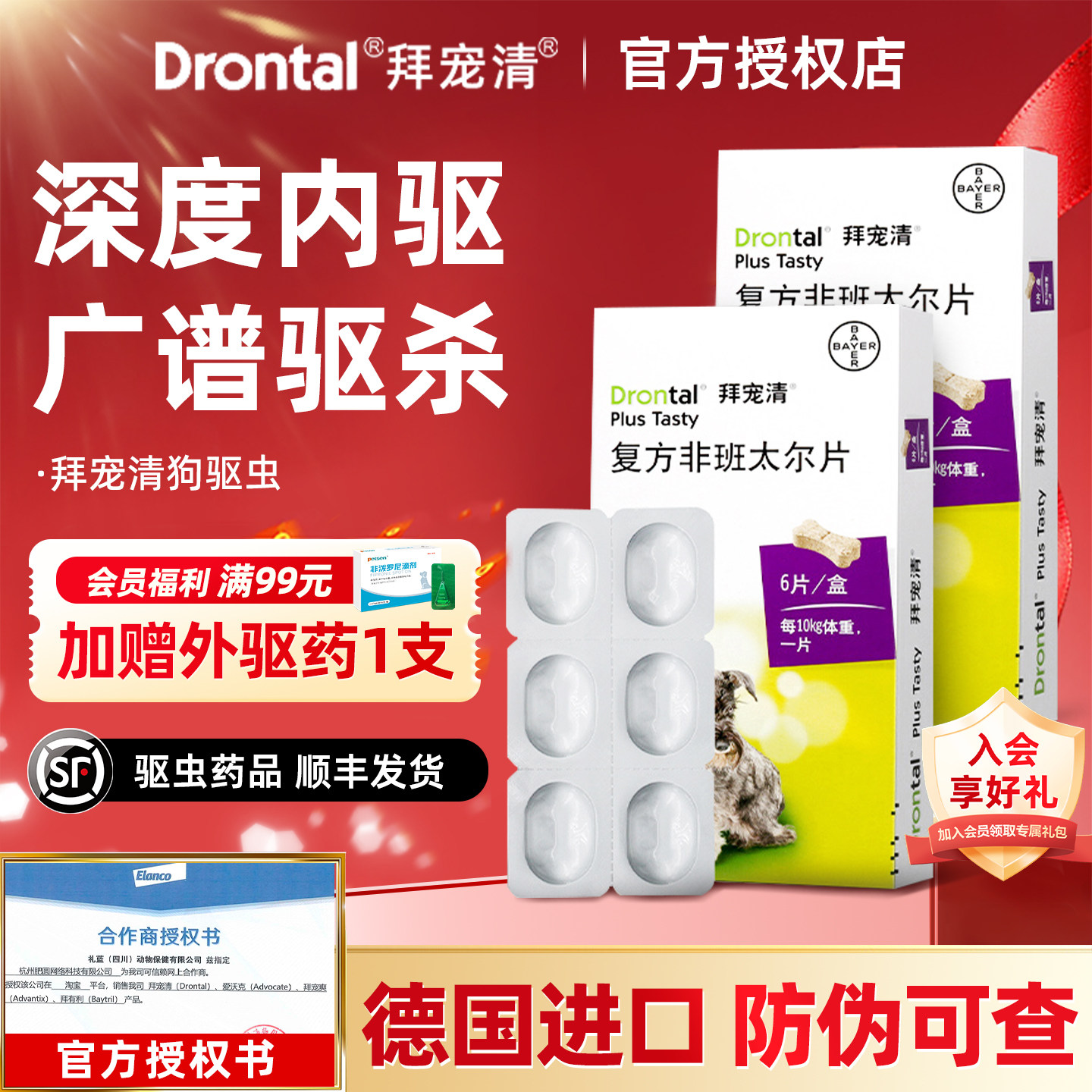 拜宠清体内驱虫狗狗驱虫药口服内驱除蛔虫绦虫2片6片装德国进口