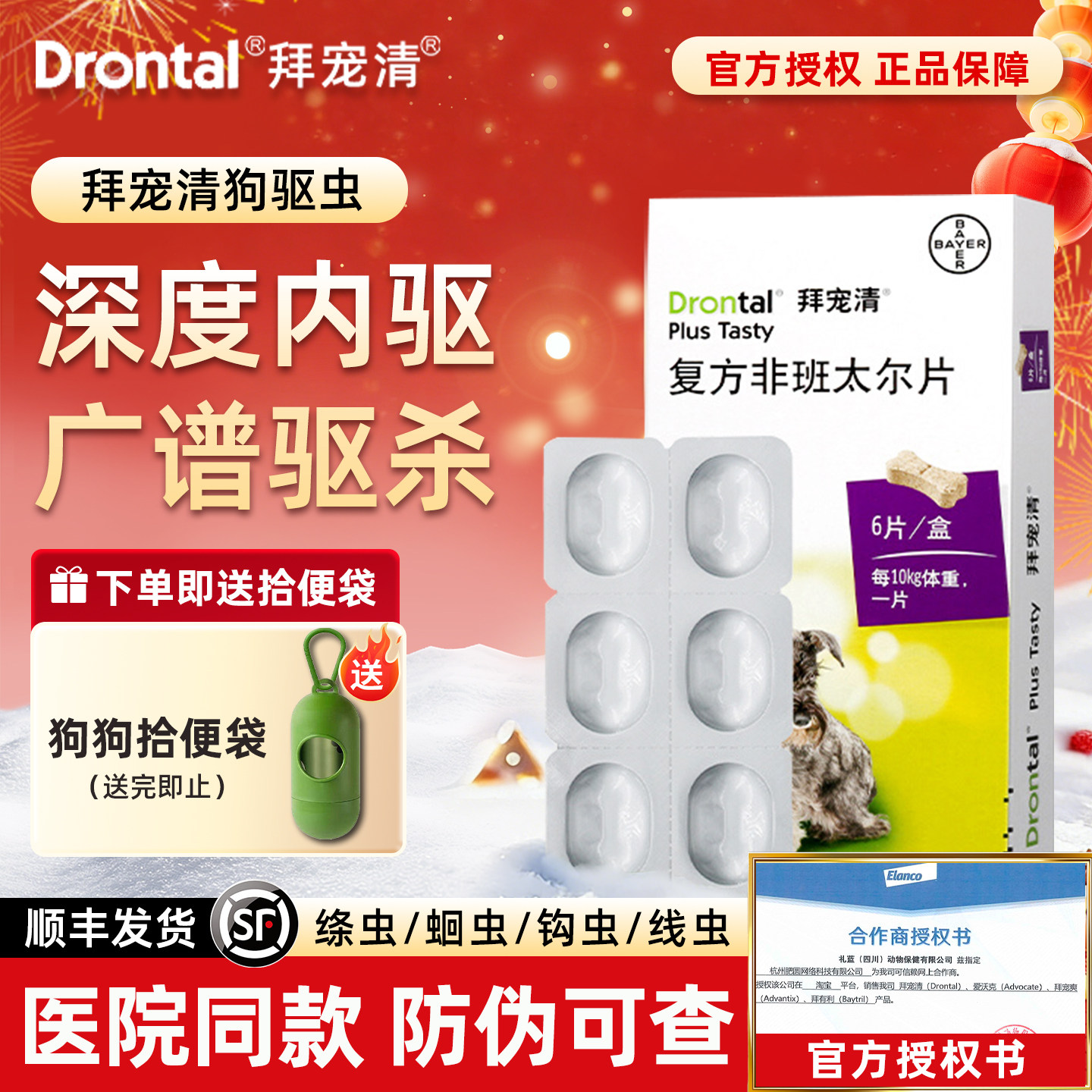 拜宠清体内驱虫狗狗驱虫药拜耳拜宠清狗驱虫宠物幼犬用福来恩驱虫