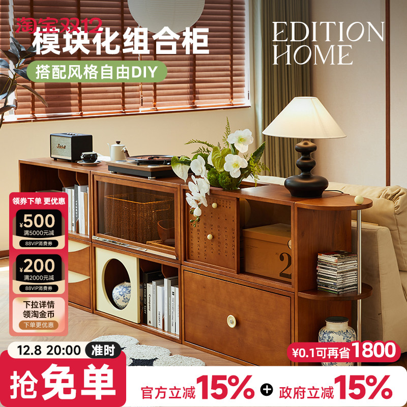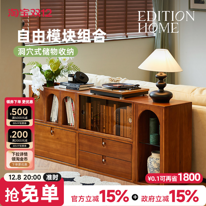 实木书柜自由组合模块柜客厅落地收纳柜家用矮柜储物柜斗柜电视柜