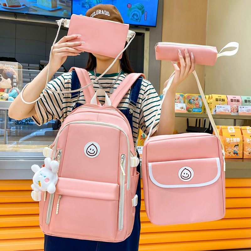 2025新款日系书包女初中高中学生四件套双肩包外出休闲手提电脑包