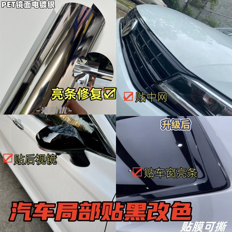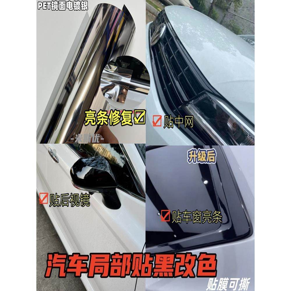 汽车亮条贴膜电镀银修复改色黑化膜后视镜黑耳把手中网亮黑B柱膜