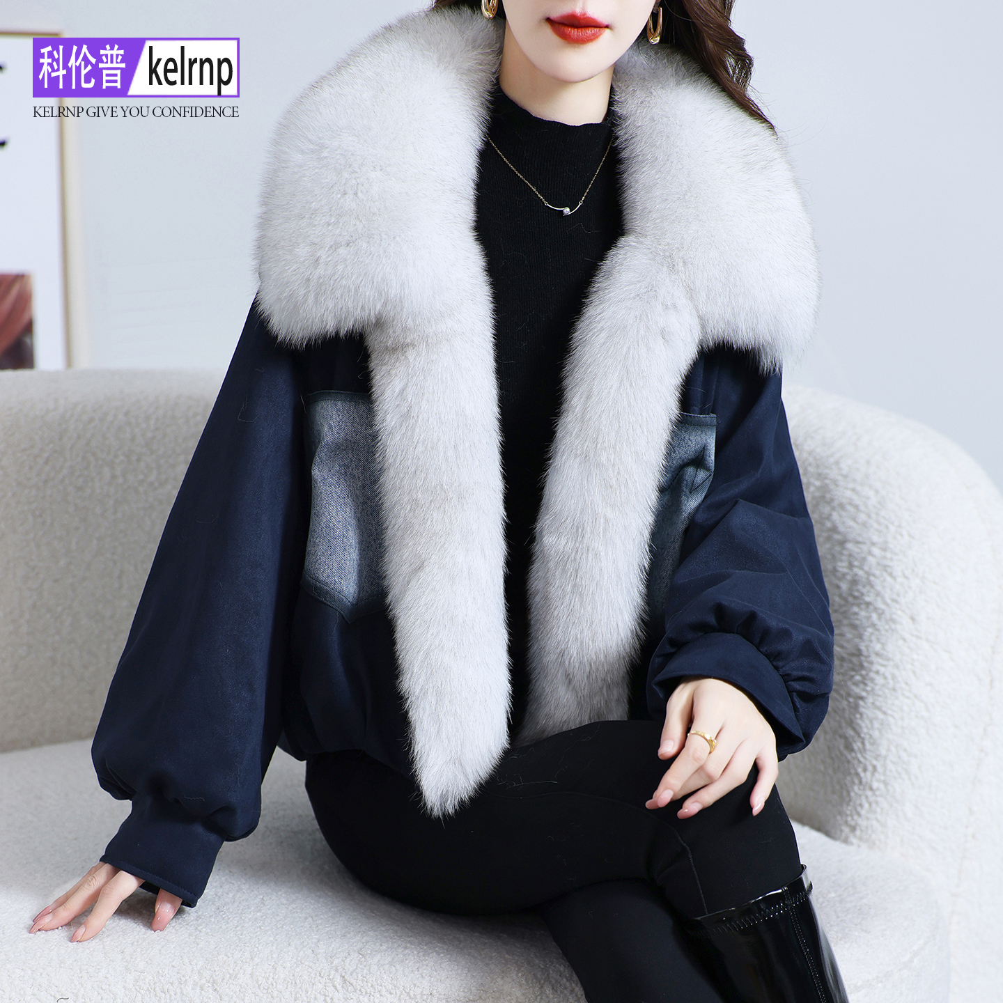 进口狐狸毛领大衣女2025冬韩版时尚超大保暖鹅绒羽绒服真皮草外套
