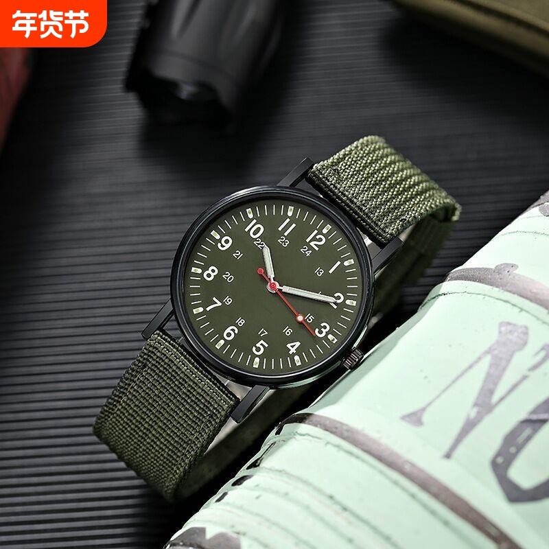 25年新品学生公务员考试用带夜光手表男女尼龙帆布表带手表男腕表
