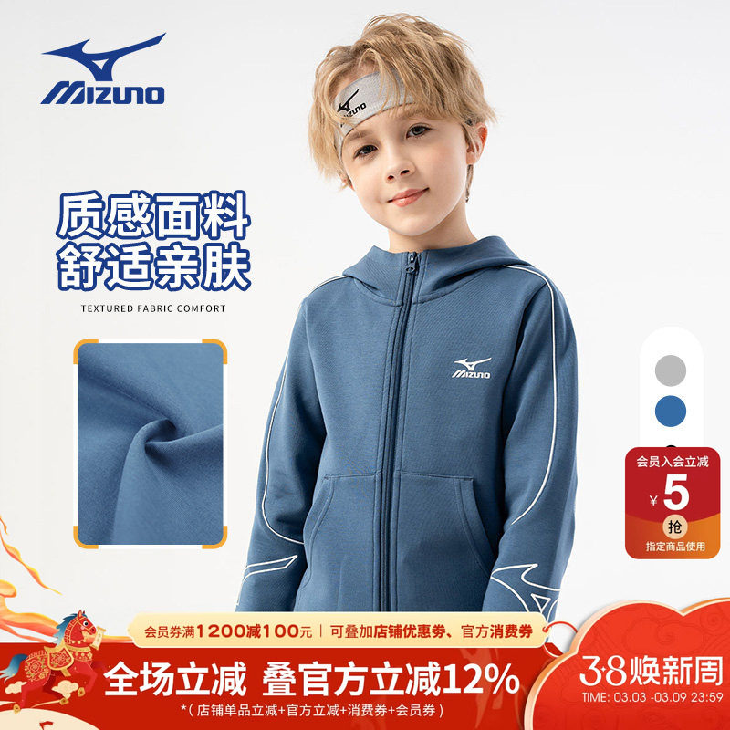 Mizuno美津浓KIDS外套男女中大儿童长款连帽卫衣休闲春秋薄款