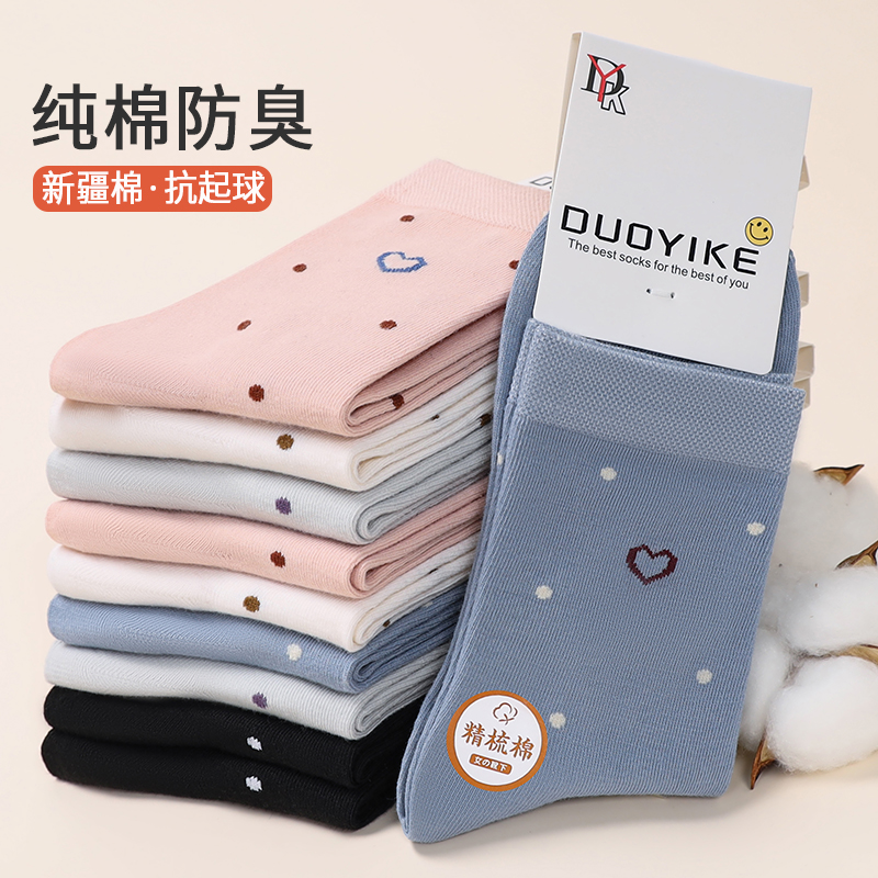 女袜中筒纯棉女士运动袜爱心波点纯棉透气吸汗棉袜学生运动春秋袜