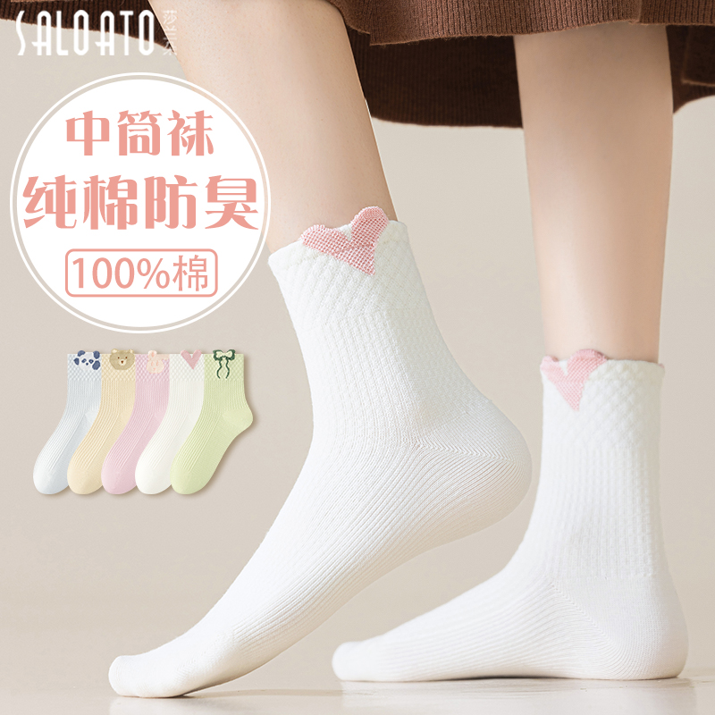 袜子女款春秋冬季纯棉全棉防臭中筒女袜2025新款爆款韩国女士运动