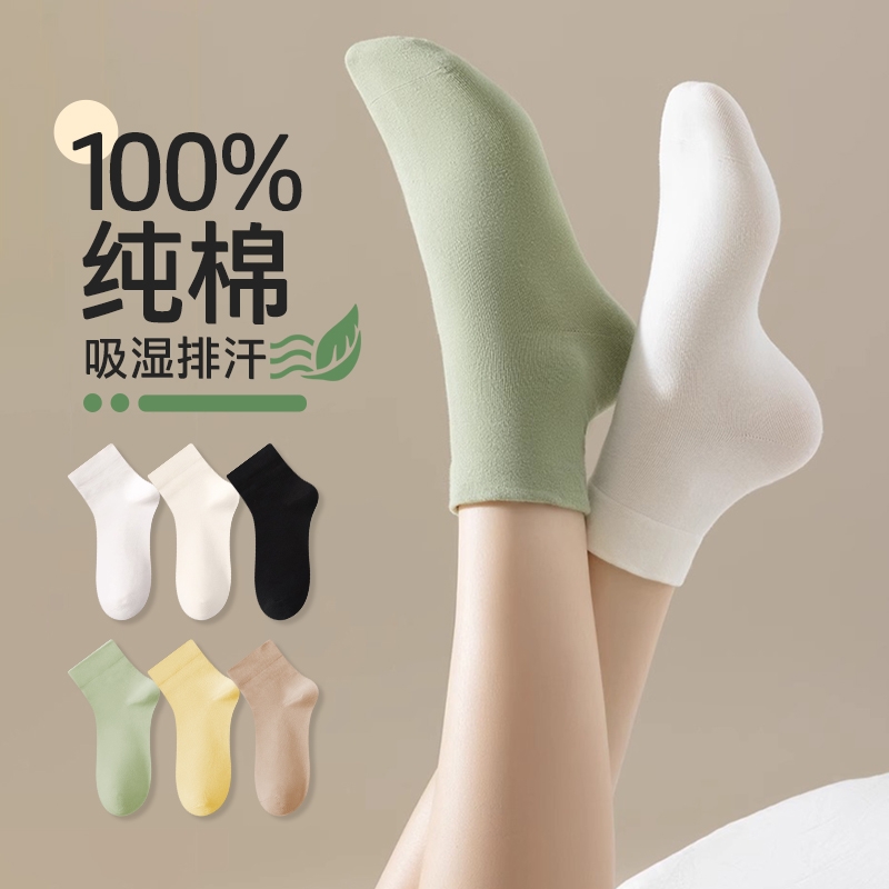 袜子女款中筒袜纯棉夏季日系短筒运动百搭简约秋冬季短袜女袜棉袜