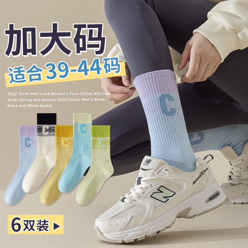 纯棉袜子女韩版中筒长筒袜潮袜女Ins袜纯色男女袜运动袜情侣男袜