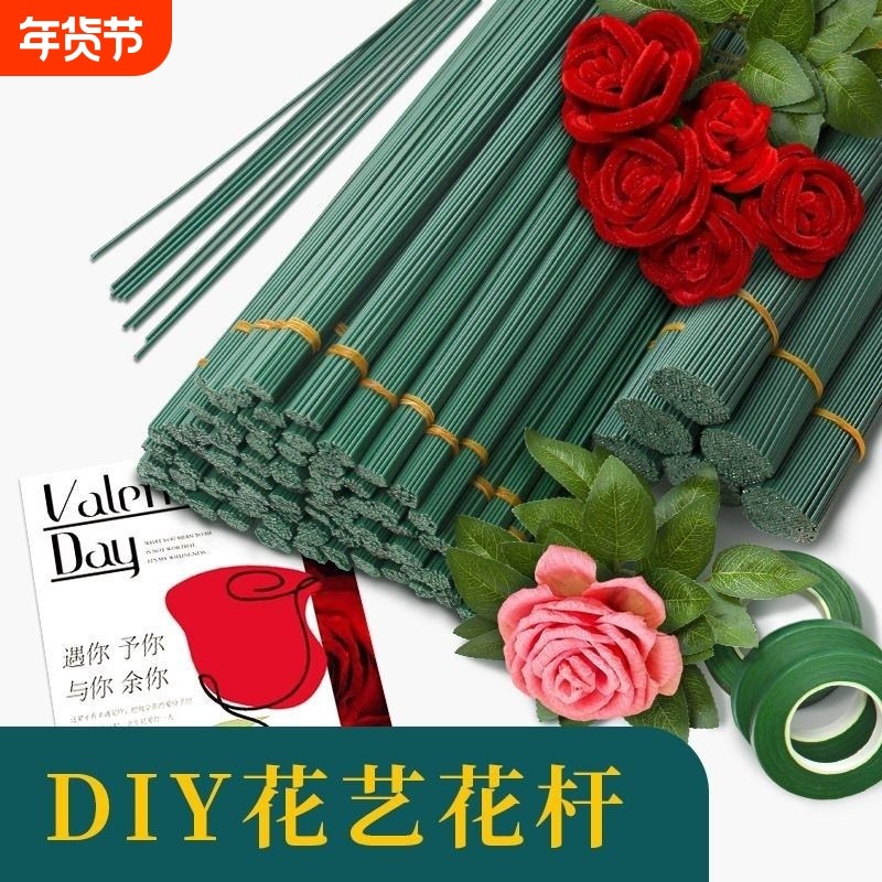 2号花杆丝网花材料DIY绿铁丝花枝胶包手工玫瑰花钩针花艺花径制作