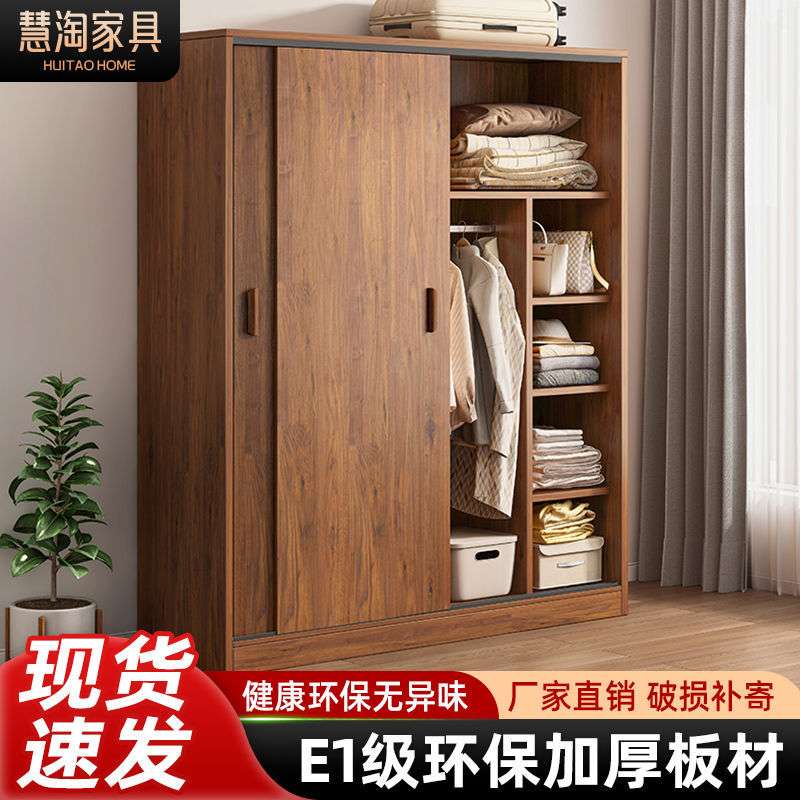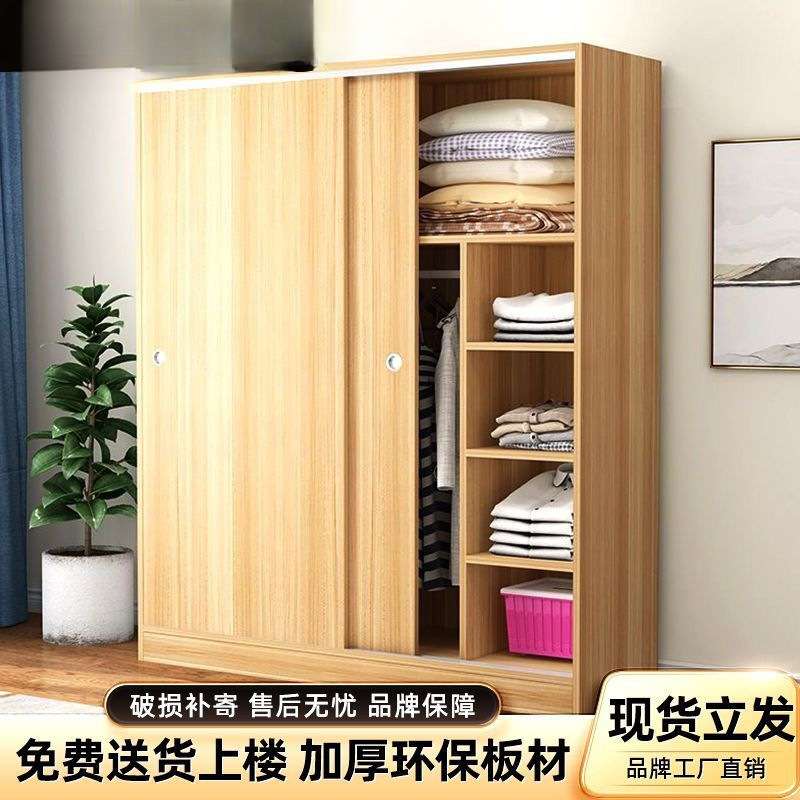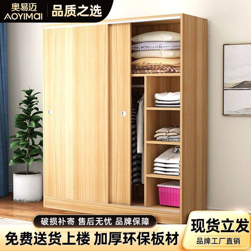 衣柜家用卧室简易组装实木板式柜子出租房推拉门大容量耐用储物柜