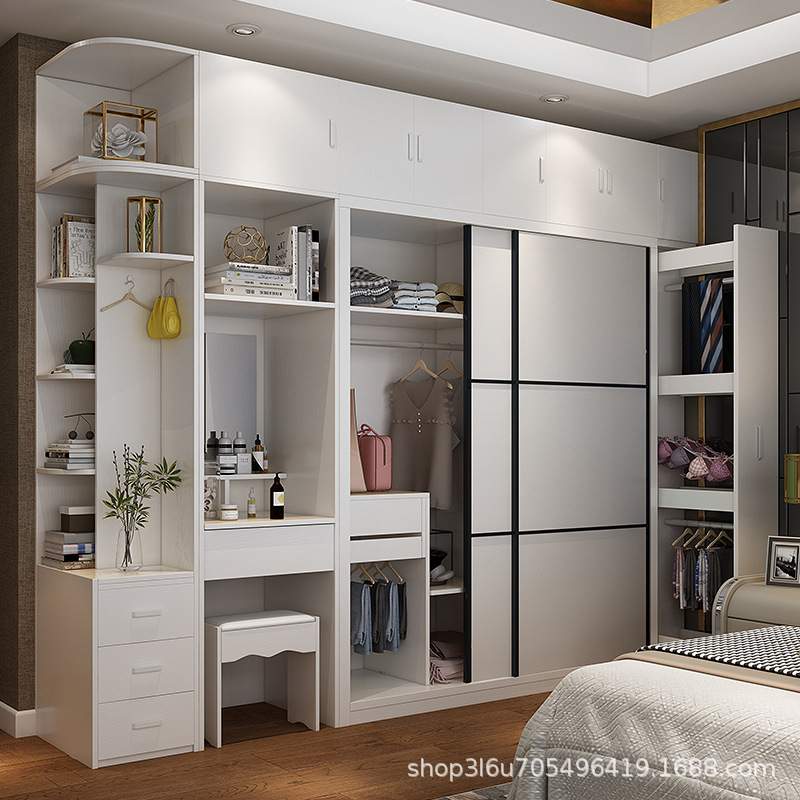 衣柜推拉门实木板式简易收纳柜卧室储物柜出租房衣橱家用简易多用