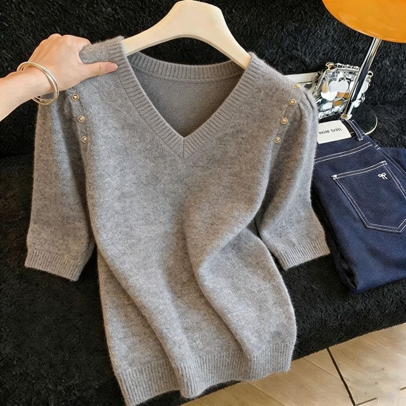 - 短袖针织衫女 打底衫