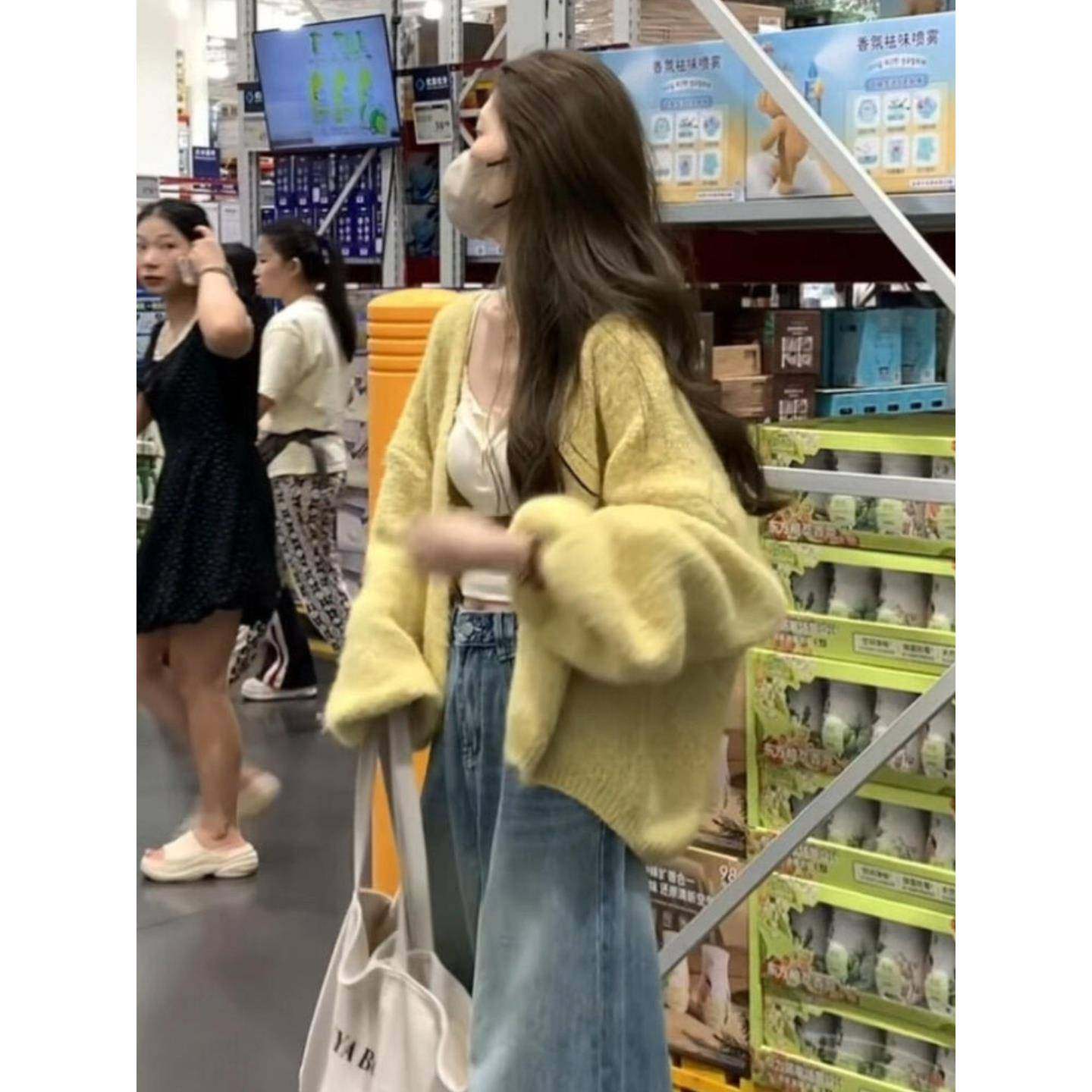 韩系氛围感灯笼袖毛衣外套女秋冬慵懒高级感中长款马海毛针织开衫