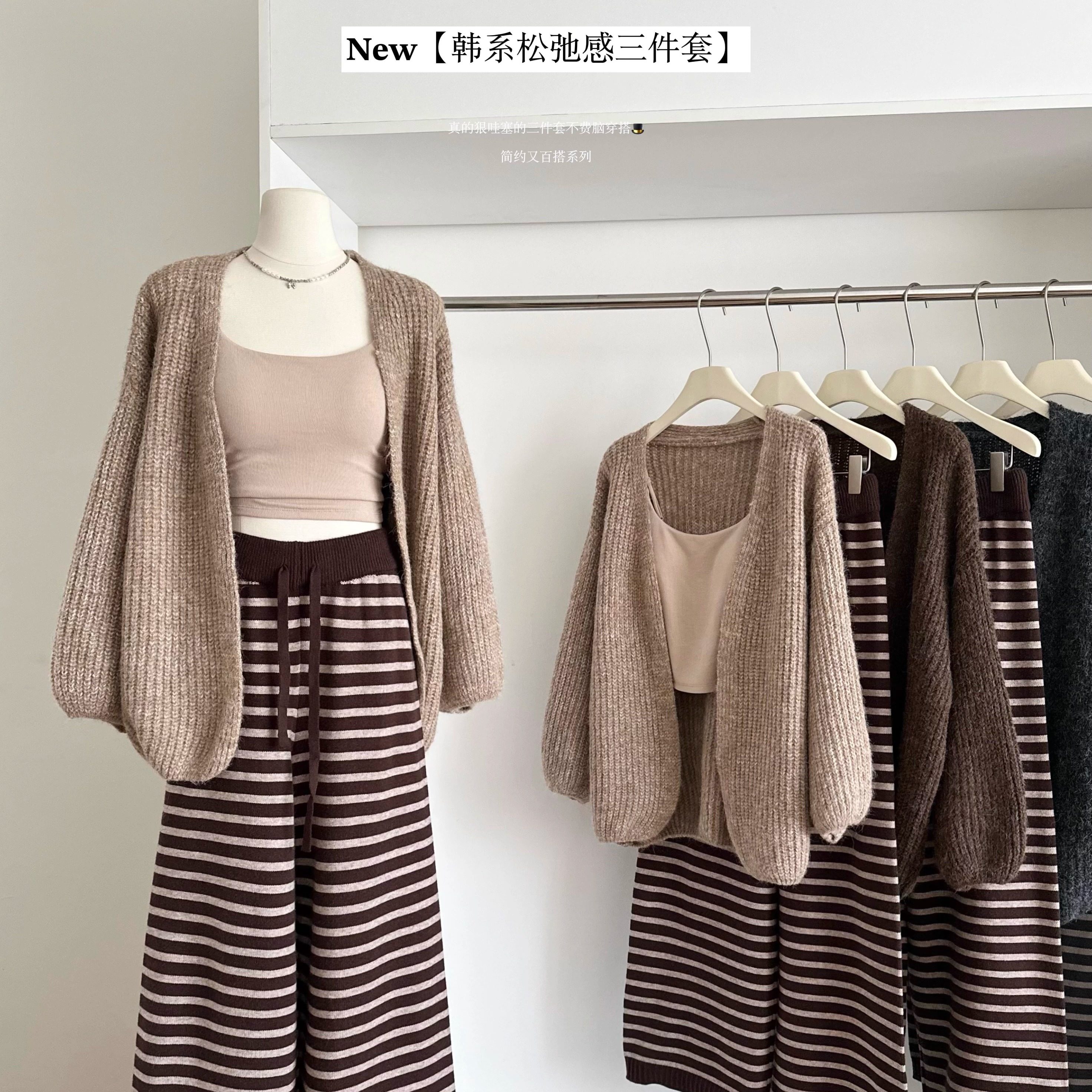 秋冬女装批新款发休闲百搭灯笼袖针织慵懒宽松外搭开衫毛衣外套潮