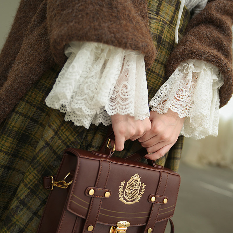 CRISP日系穿搭拼接网纱袖针织开衫女灯笼袖毛衣外套2024秋冬新款