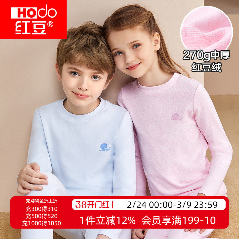 红豆儿童加绒加厚保暖内衣套装男童色纺秋衣秋裤女童纯棉宝宝秋冬
