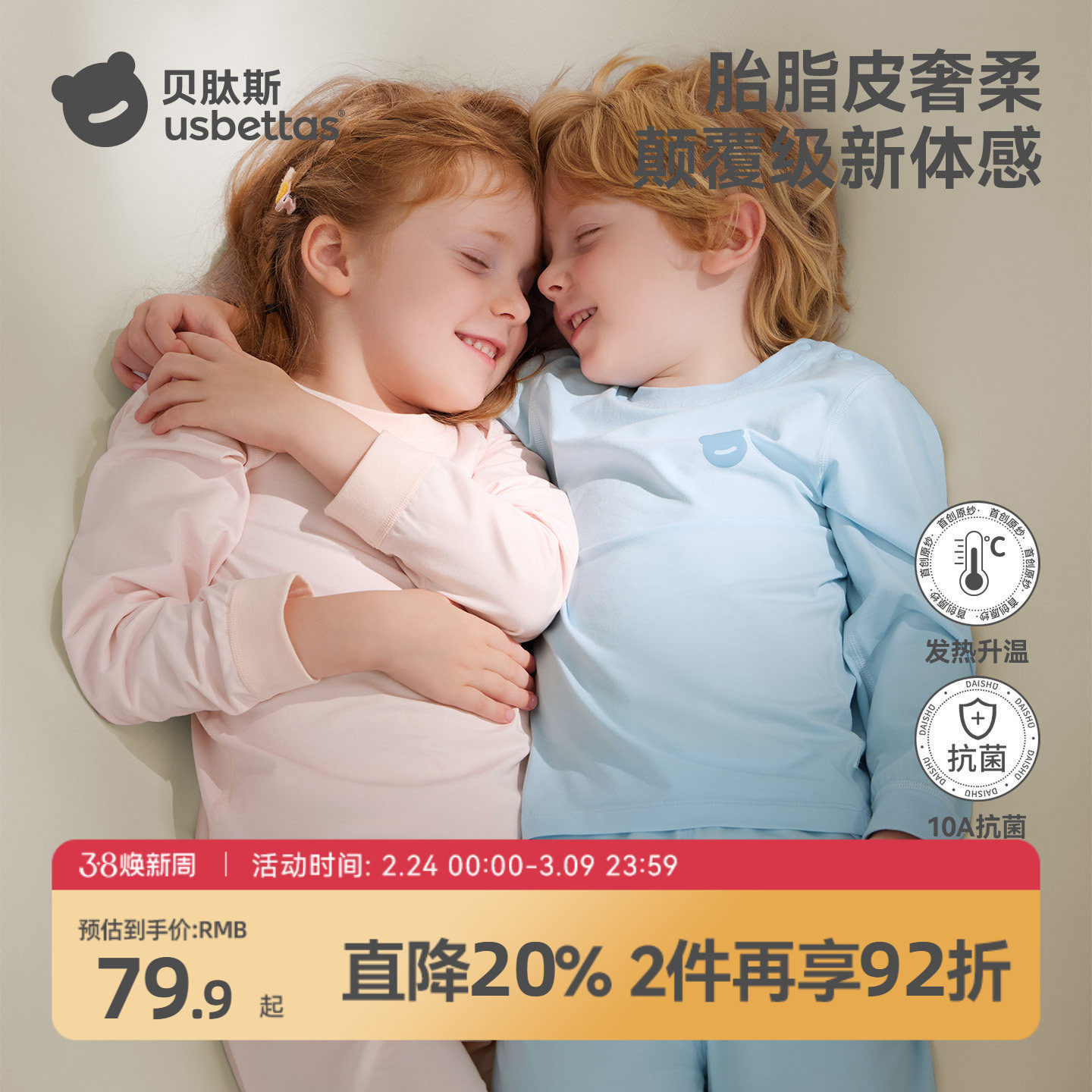 贝肽斯[胎脂皮]儿童秋衣秋裤宝宝秋衣套装中大童保暖内衣加厚睡衣