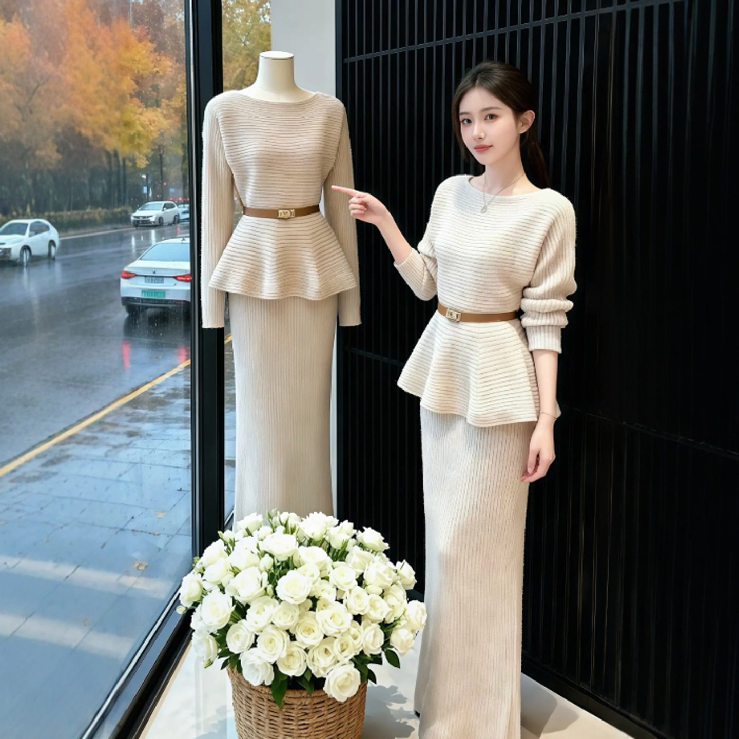- 秋冬套装包臀裙 两件套