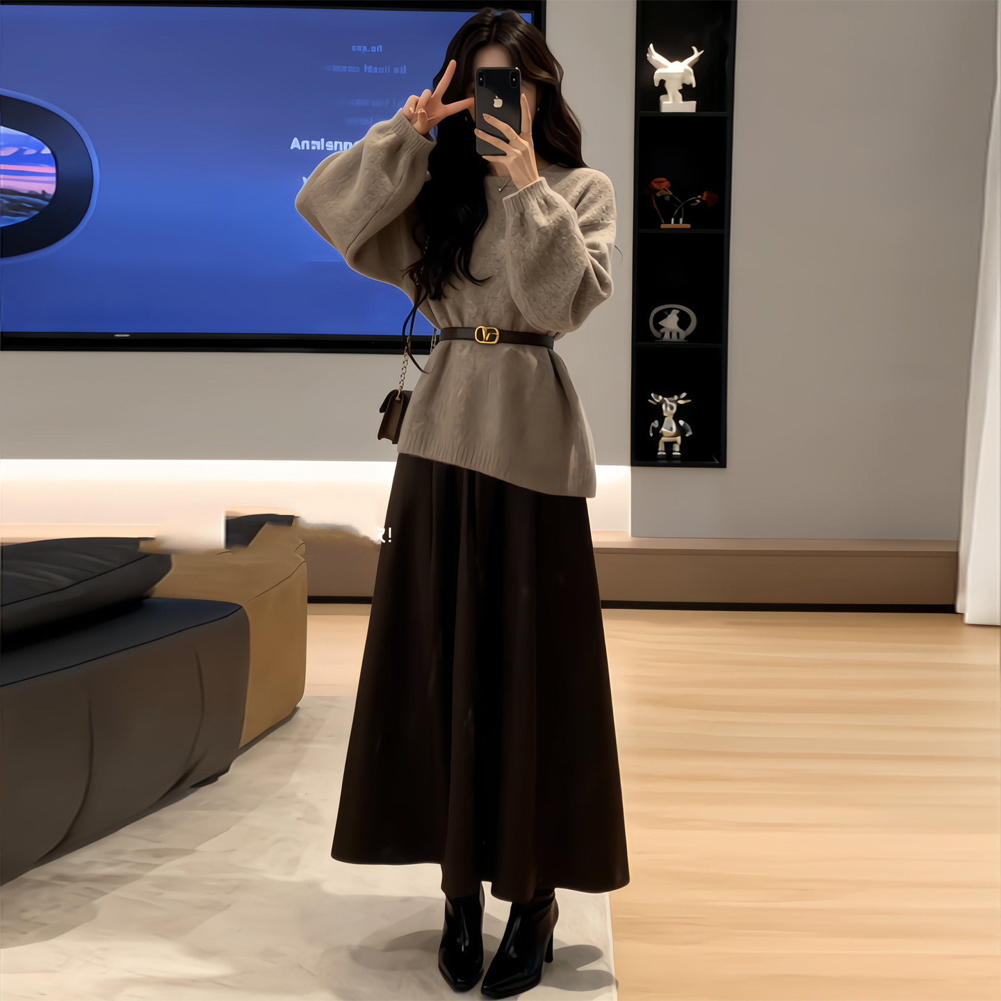 2026超火冬装穿搭一整套韩系温柔风毛衣针织半身裙巨好看两件套装