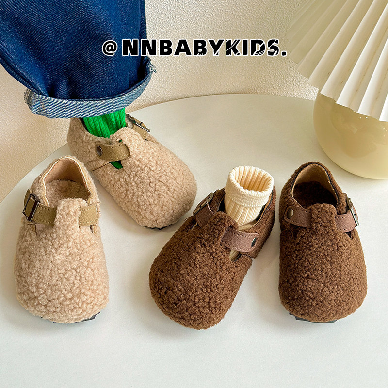 ins法式毛毛勃肯鞋2025冬季新款韩版女童加绒豆豆鞋男童软底棉鞋