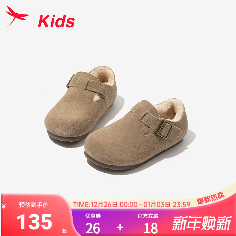红蜻蜓女童鞋2025秋冬新款加绒儿童棉鞋毛毛鞋勃肯鞋豆豆鞋袋鼠鞋