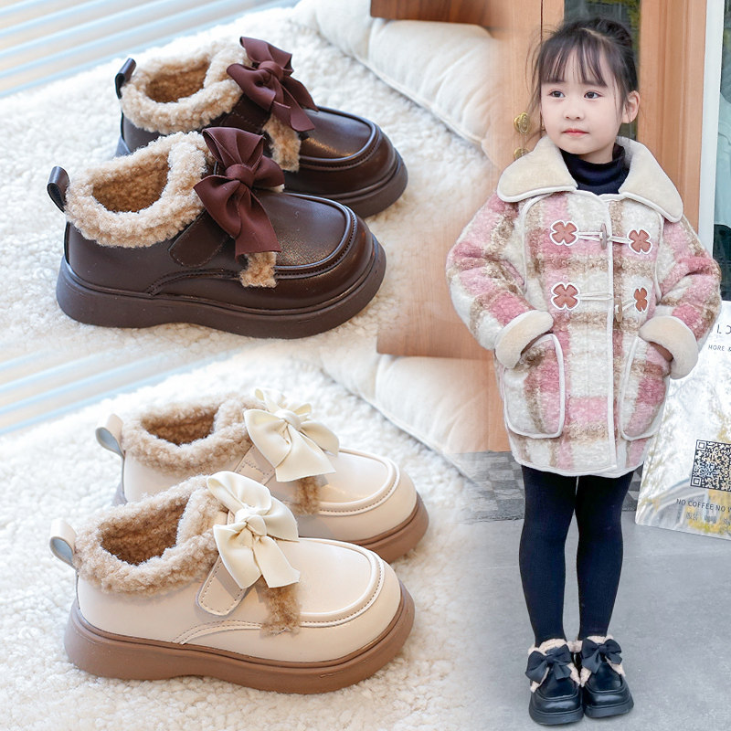 女童皮鞋冬款2025潮牌新款儿童二棉豆豆鞋小女孩公主加绒棉鞋软底