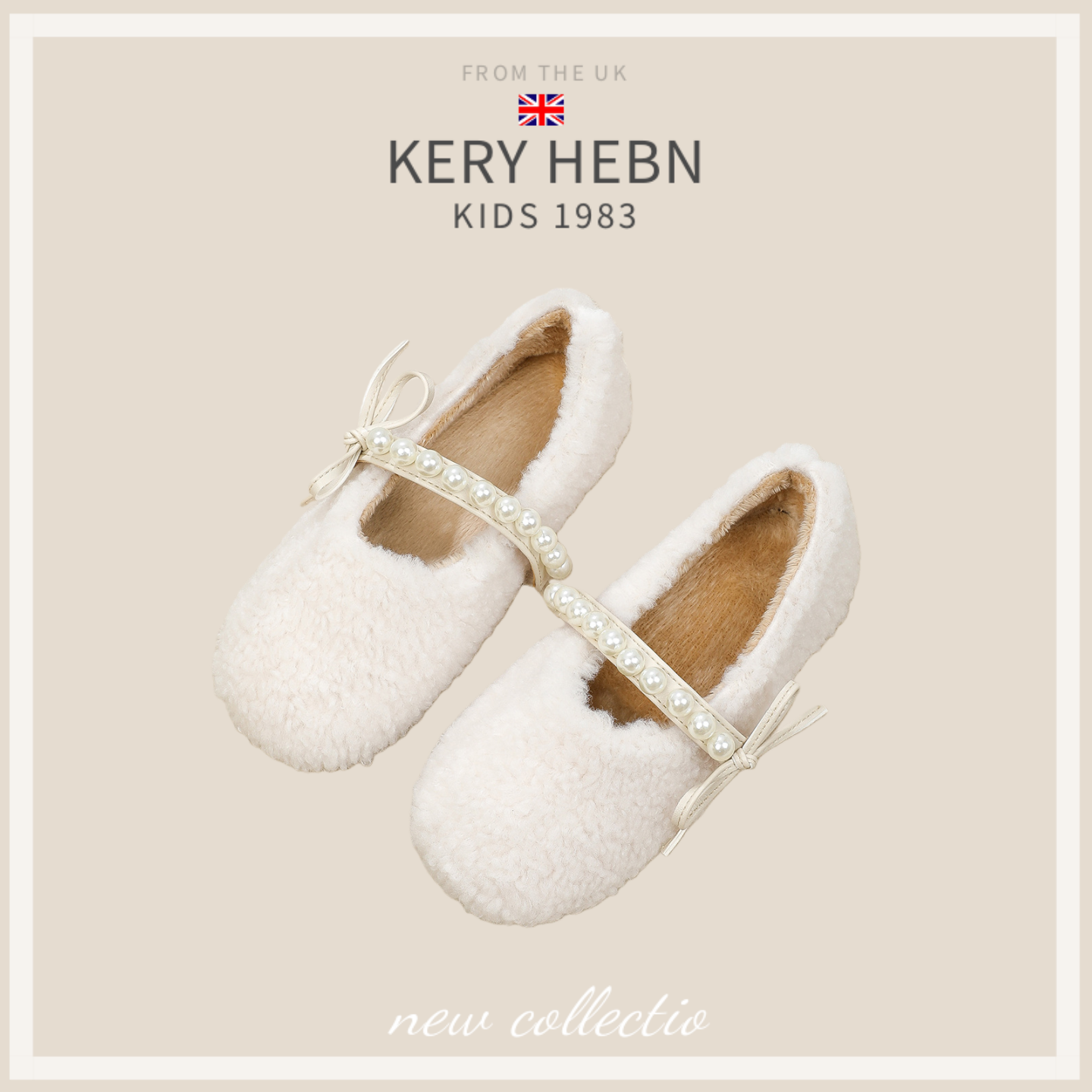 KeryHebn秋冬女孩珍珠毛毛鞋女童加绒豆豆鞋雪地棉瓢鞋保暖棉鞋