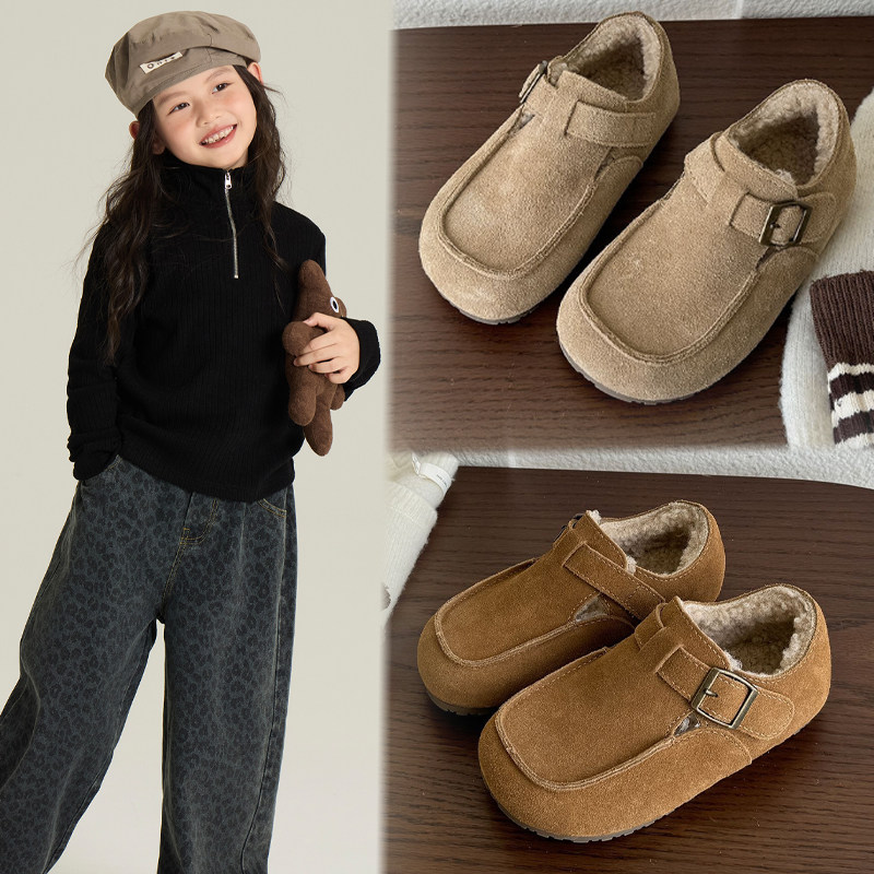 女童勃肯鞋加绒儿童鞋子2025冬季新款小女孩二棉鞋春秋毛毛豆豆鞋