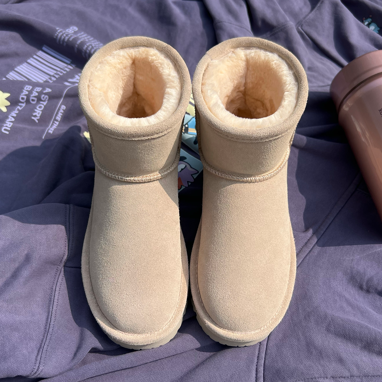 2025新款防水雪地靴女皮毛一体保暖加绒短筒百搭冬季真皮防滑棉鞋
