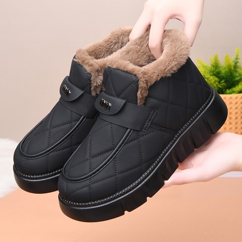 2025冬季新款老北京棉鞋女加绒加厚保暖防滑妈妈鞋皮面防水雪地靴