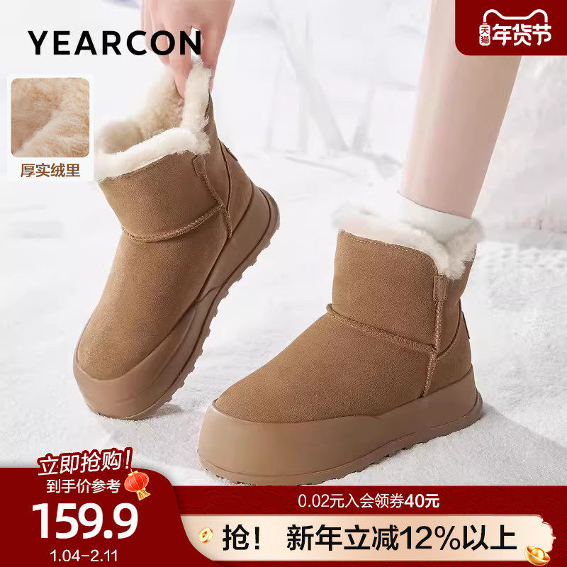意尔康真皮防水雪地靴女冬2025东北厚底增高防滑棉鞋加绒加厚短靴
