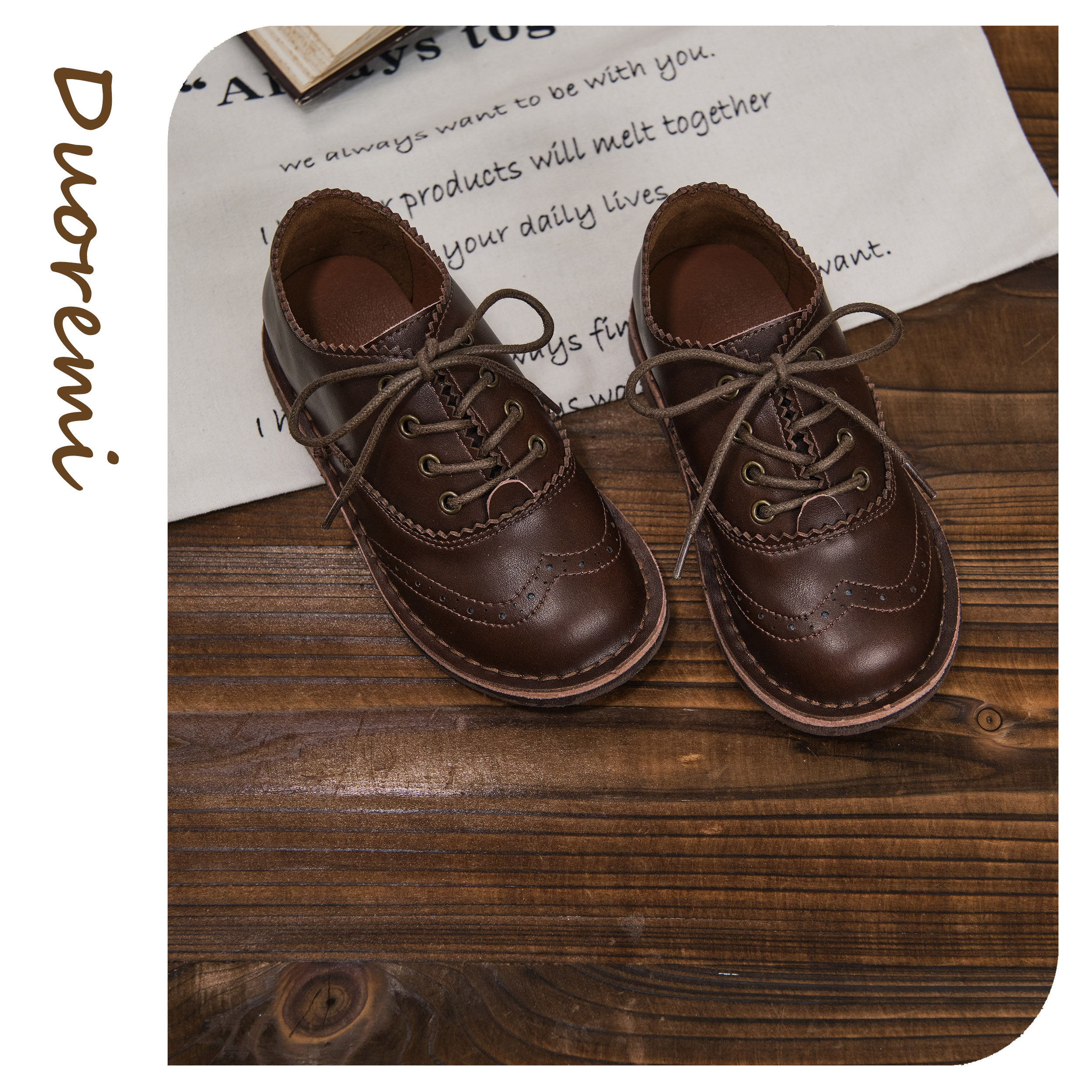 DuoReMi学生皮鞋25aw43秋季软底一脚蹬童鞋英伦镂空雕刻复古皮鞋
