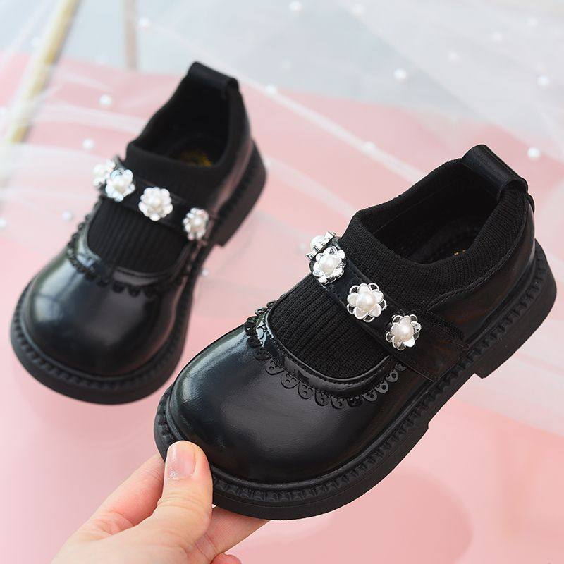 女童鞋子2025新款真皮黑色公主鞋小女孩软底春秋珍珠单鞋学生皮鞋