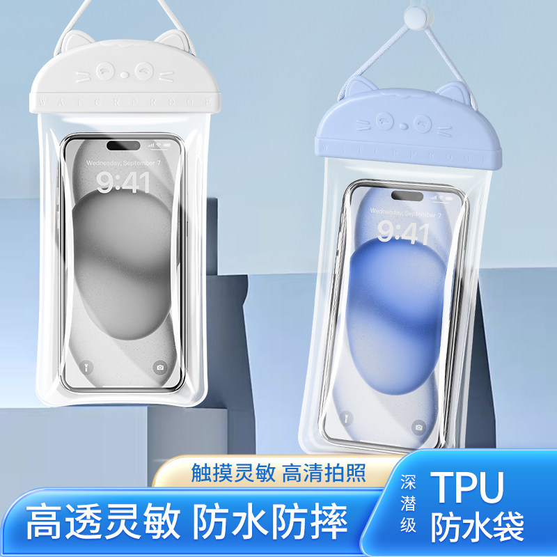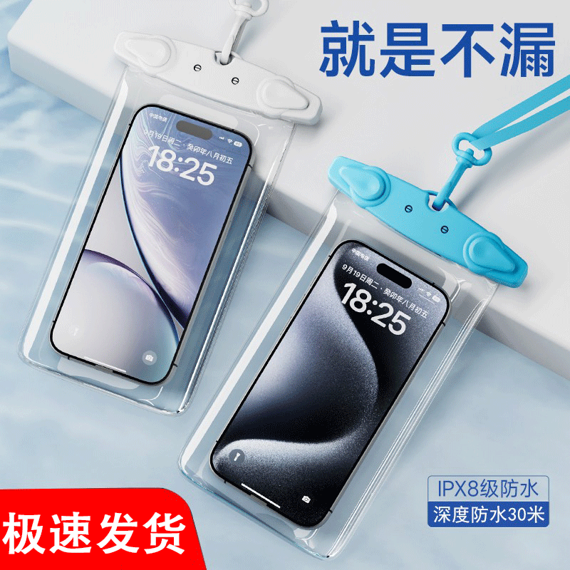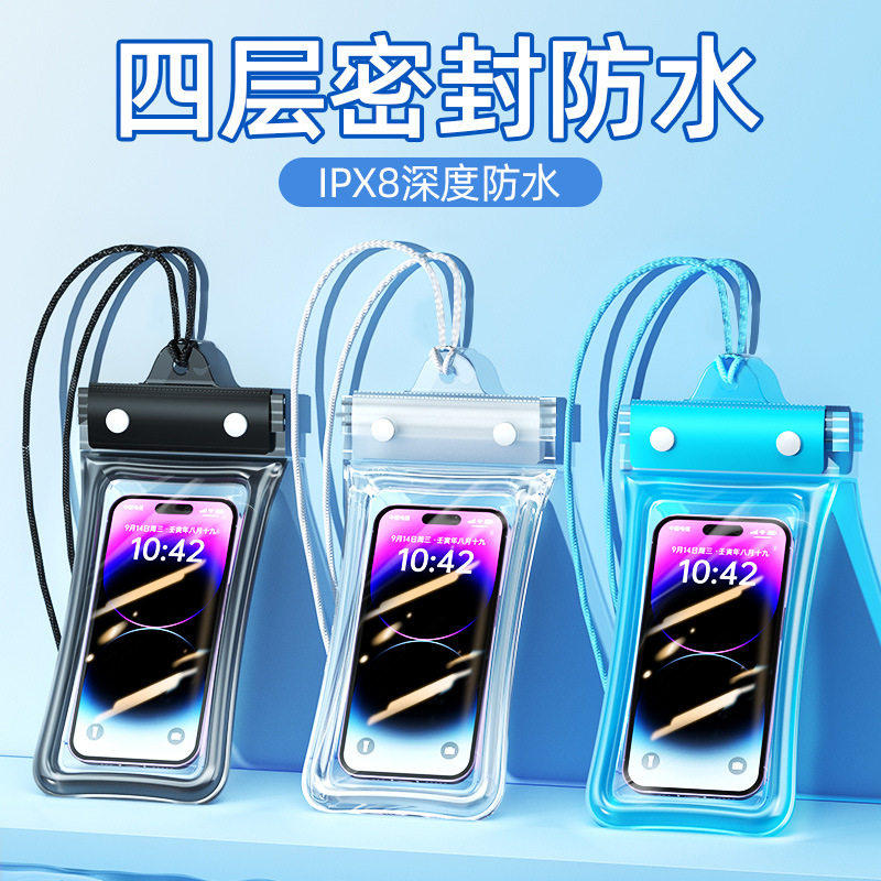 通用密封条手机防水袋游泳漂流卡通气囊防沉可触摸屏斜挎绳潜水套