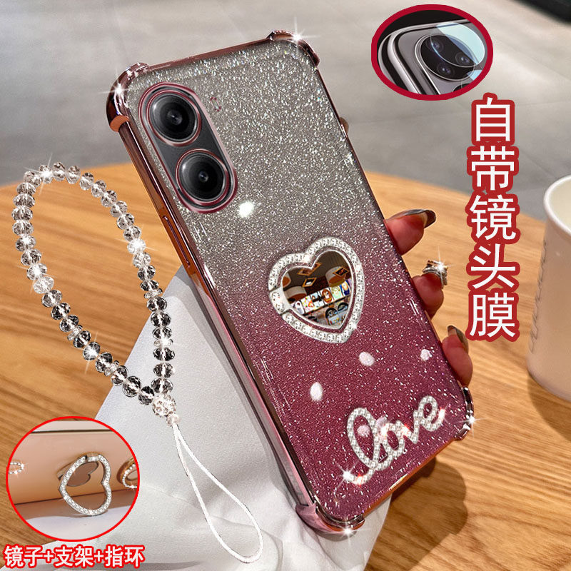 适用小米redmi红米turbo4手机壳5G立体镶钻LOVE字母镜子指环旋转支架保护套防摔软胶一体镜头全包边女款气囊