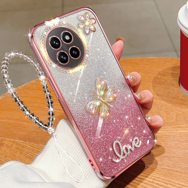适用小米redmi红米turbo4手机壳5G闪镶钻奢华蝴蝶镜头全包直边电镀水晶挂绳链子女款软胶防摔保护套时尚新品