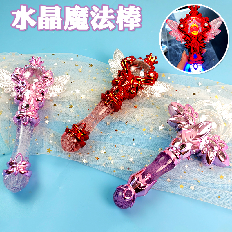 儿童闪光魔法棒水晶透明灯光音乐小魔仙变身器女孩电动仙女棒礼物