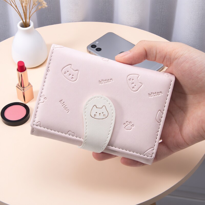 可爱猫咪折叠短款钱包韩版少女心学生薄款钱夹卡通时尚小众零钱包