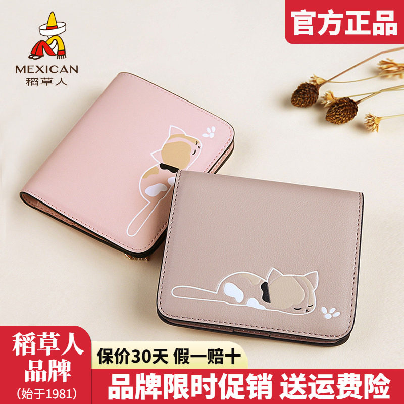 稻草人钱包女短款薄韩版两折叠学生小清新个性可爱多功能简约牛皮